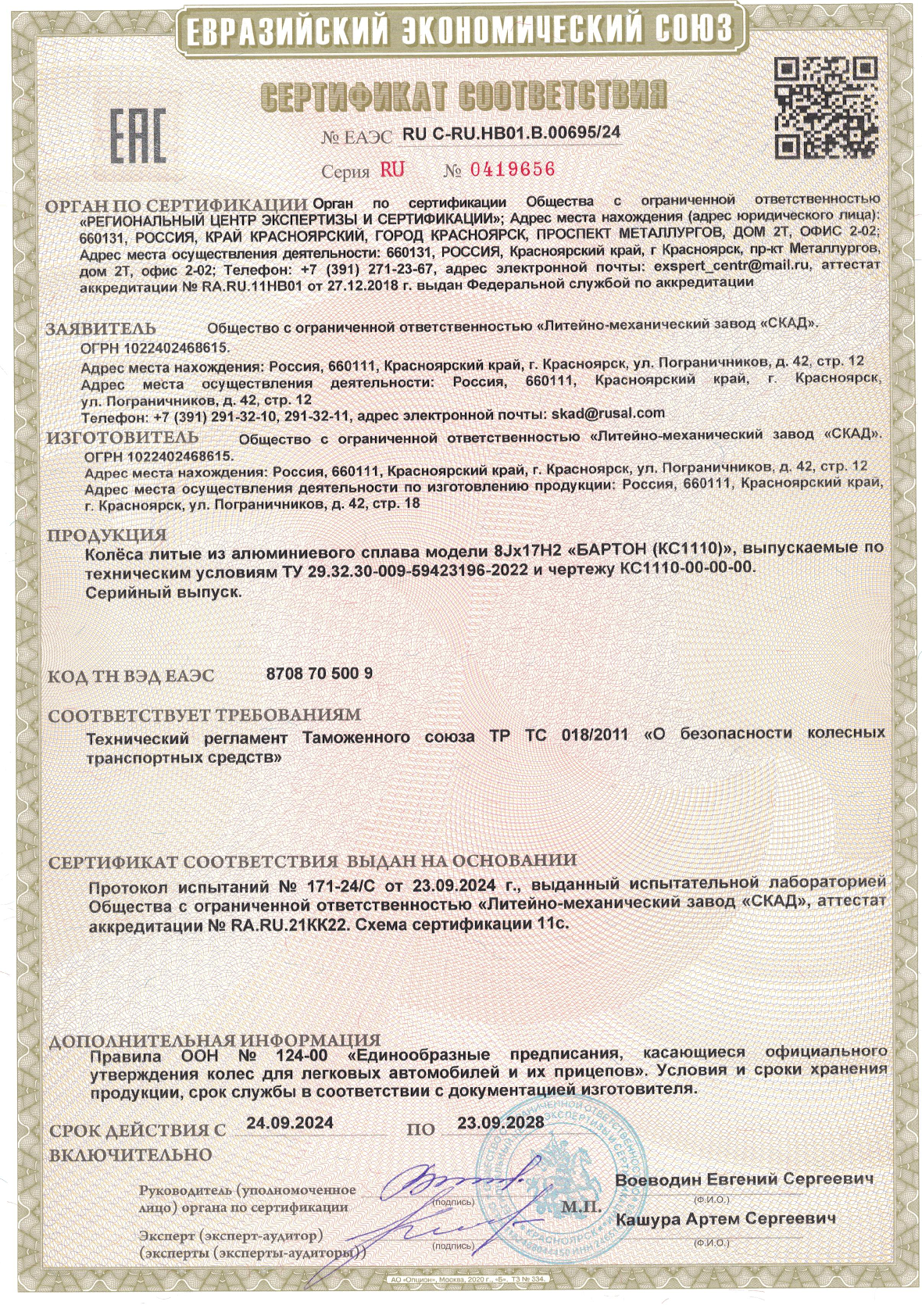 После этого отправьте пожалуйста Акт, фото и номер заказа нам на электронную почту zavod@skad.ru