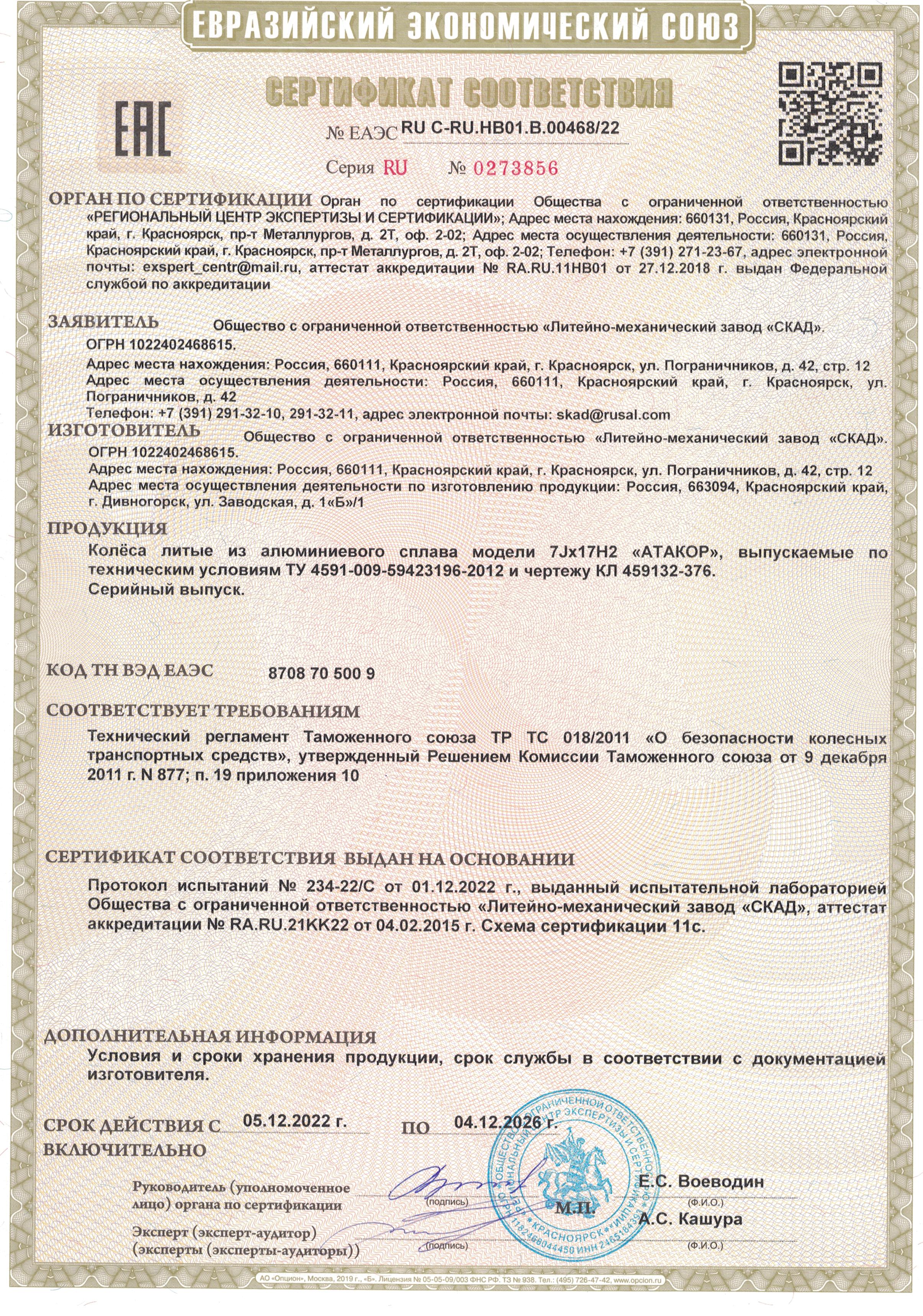 Приобретайте диски SKAD АТАКОР 7.000xR17 5x112 DIA66.6 ET40 напрямую от производителя из Сибири. Все представленные в ассортименте диски сертифицированы.