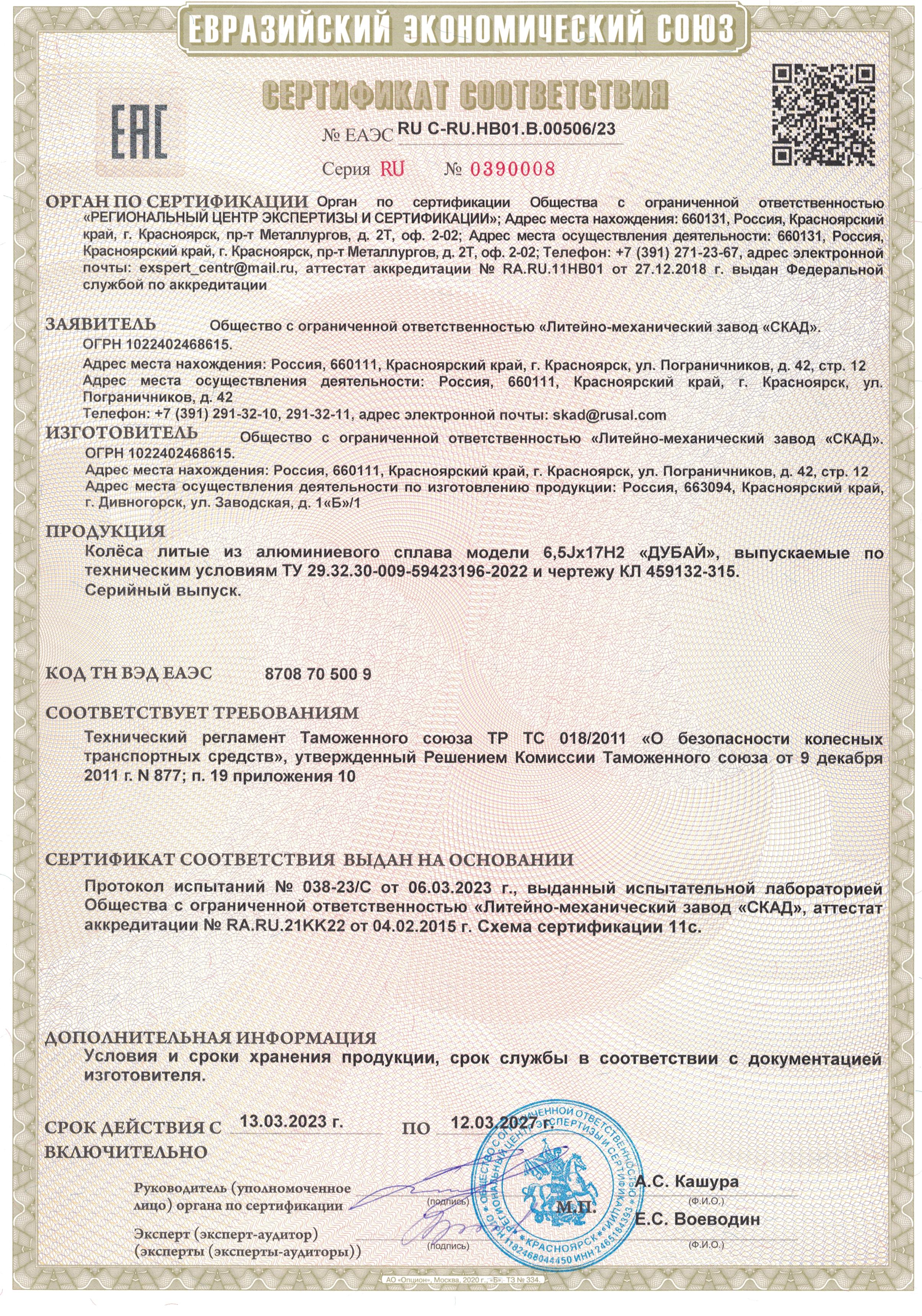 Приобретайте диски SKAD ДУБАЙ 6.500xR17 5x114.3 DIA66.1 ET40 напрямую от производителя из Сибири. Все представленные в ассортименте диски сертифицированы.