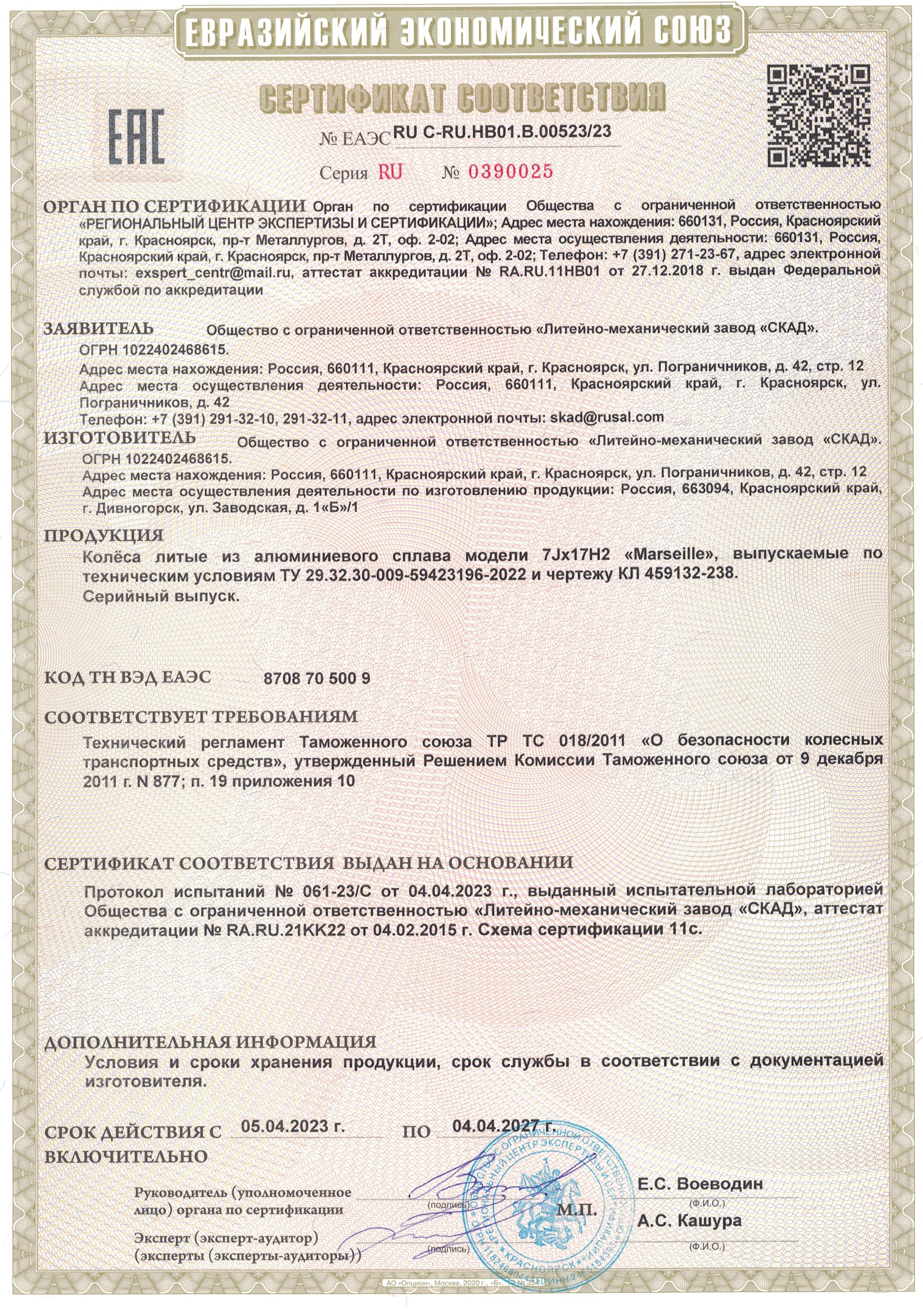 Приобретайте диски SKAD Marseille 7.000xR17 5x108 DIA63.35 ET45 напрямую от производителя из Сибири. Все представленные в ассортименте диски сертифицированы.