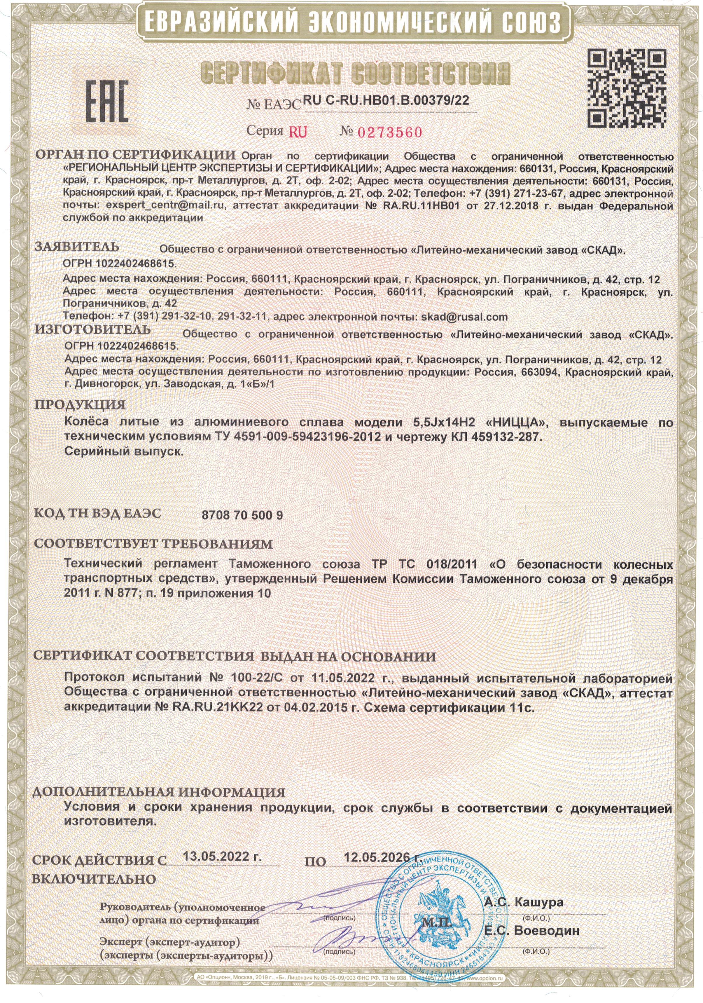 Приобретайте диски SKAD НИЦЦА 5.500xR14 4x98 DIA58.6 ET35 напрямую от производителя из Сибири. Все представленные в ассортименте диски сертифицированы.