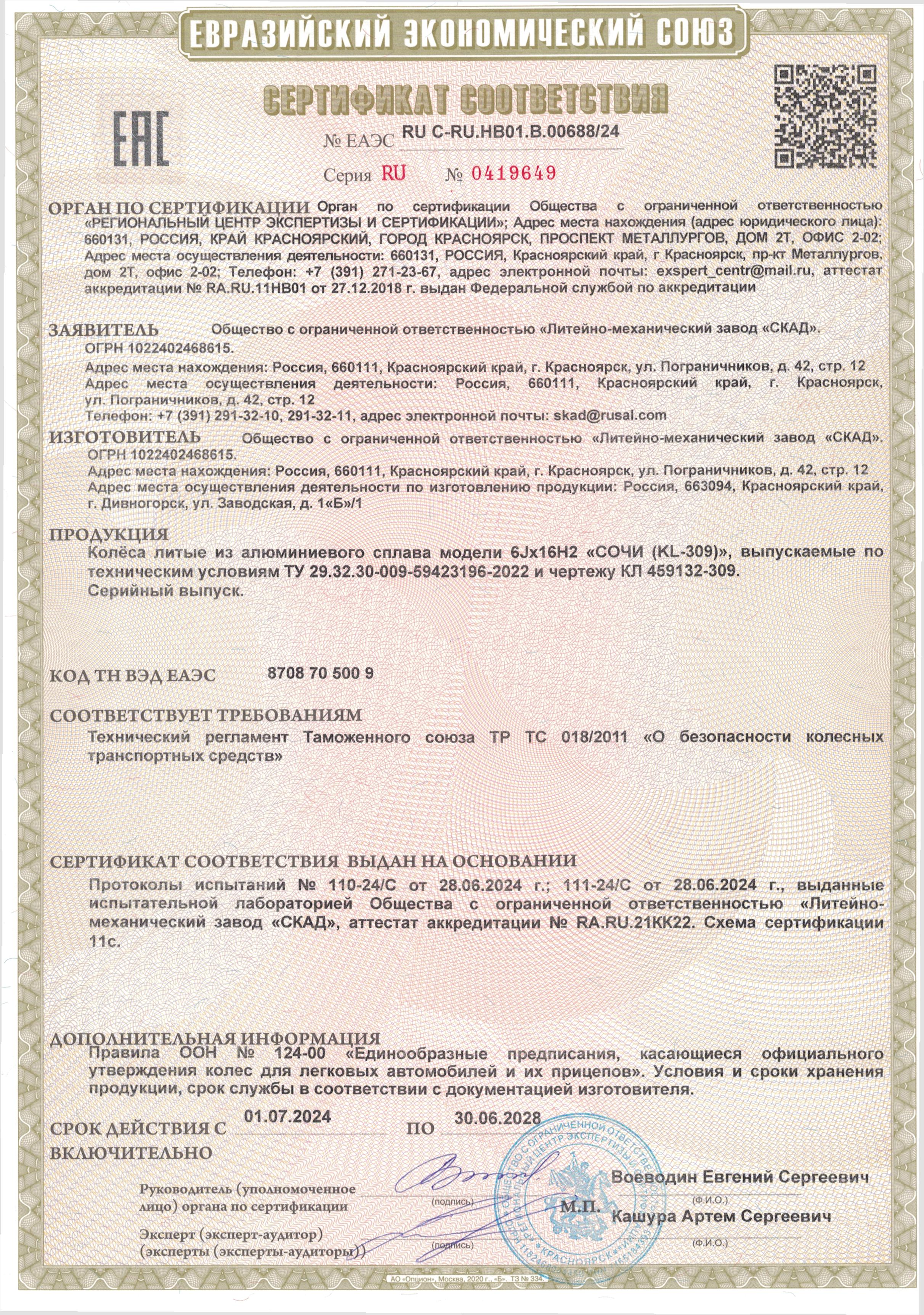 Приобретайте диски SKAD СОЧИ 6.000xR16 4x100 DIA60.1 ET41 напрямую от производителя из Сибири. Все представленные в ассортименте диски сертифицированы.