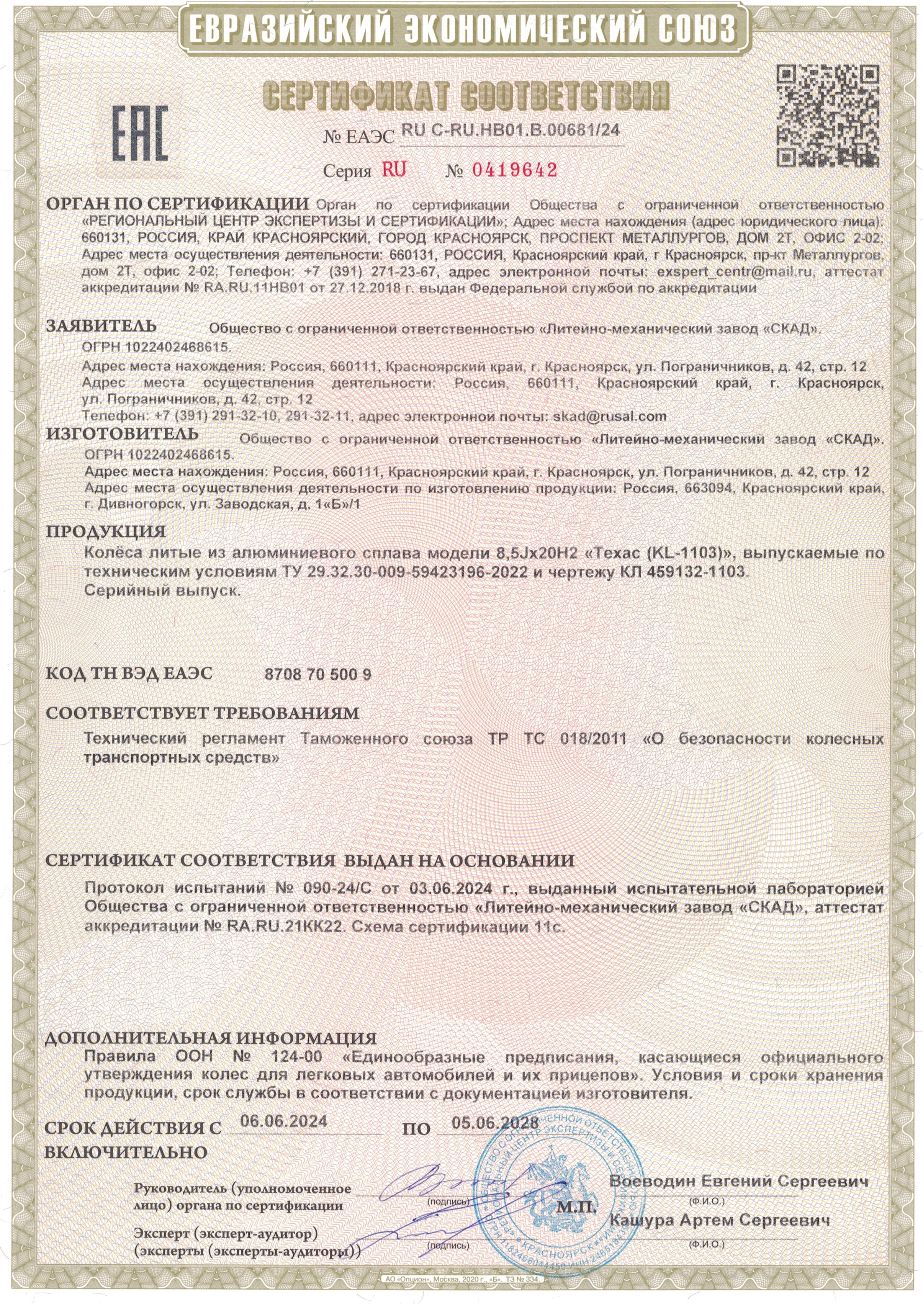 Приобретайте диски SKAD Техас 8.500xR20 5x150 DIA110.1 ET60 напрямую от производителя из Сибири. Все представленные в ассортименте диски сертифицированы.