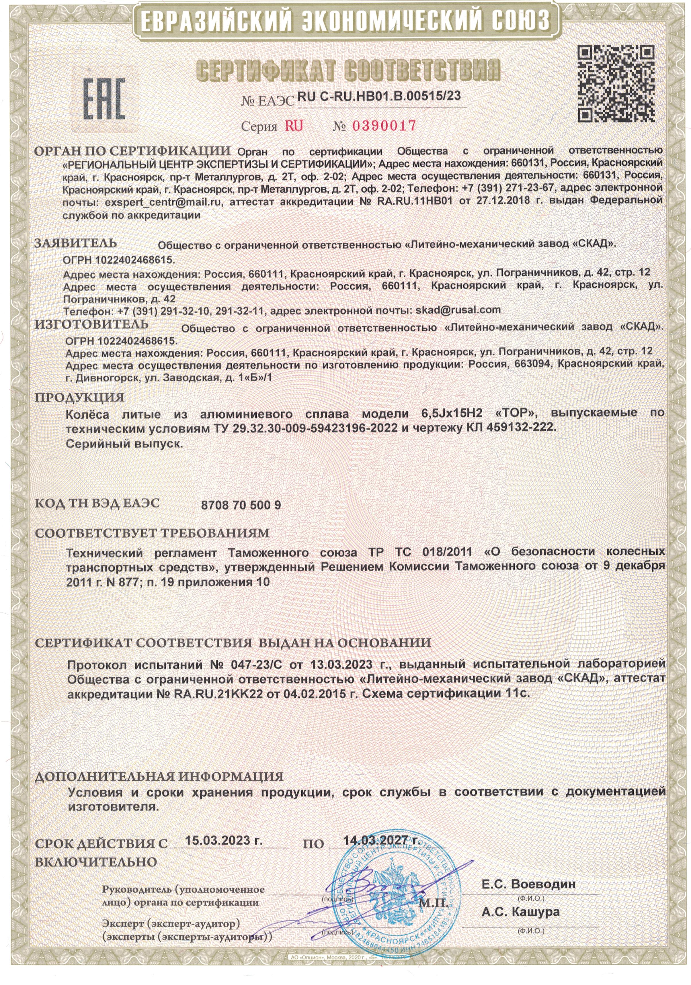 Приобретайте диски SKAD ТОР 6.500xR15 5x139.7 DIA98.5 ET40 напрямую от производителя из Сибири. Все представленные в ассортименте диски сертифицированы.
