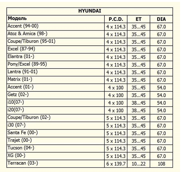 Когда вычисления окончены, подбор колесных дисков идет по таблицам, которые можно легко найти в сети или в специальной литературе.